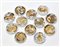 Dodici piatti della serie "Gli influssi astrali". Milano, anni '60/'70. Porcellana serigrafata in nero e oro. Serie specialmente creata per Corisia. Marcati e numerati al retro. (d cm 21) (lievi difetti)