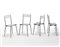 Lotto composto da quattro sedie della collezione "Ollo". Produzione Museo Alchimia, Milano, 1988. Seduta in legno multistrato rivestito in laminato bianco e nero Abet Laminati, struttura in metallo verniciato nero. (cm 36,5x80,5x38) (lievi difetti, piccole mancanze e modifiche)