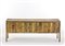 * Sideboard. Produzione Mastercraft, Austria, anni '70. Legno rivestito in ottone e pannelli in rame incisi. Recante etichetta metallica della produzione. (cm 198x75,5x54) (difetti)
