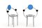 Lot of two armchairs model "First". Produced by Memphis, Milan, drawing from 1983Gray painted metal, light blue and black lacquered wood. (66x90x46 cm.) (defects)