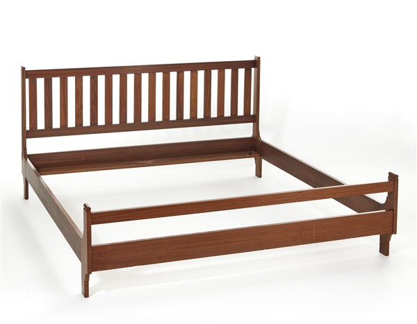 Letto matrimoniale modello "LT28". Produzione Poggi, Pavia, anni '60. Legno di teak impiallacciato. (cm 190,5x98x205) (lievi difetti)