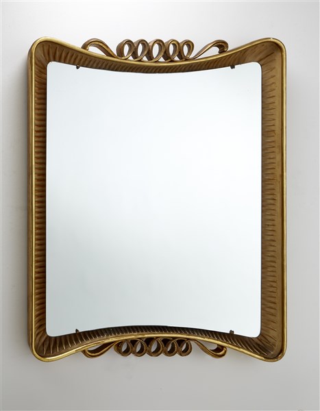 Specchiera. Esecuzione Atelier Borsani, Varedo, 1940ca. Vetro con cornice in legno decorato a foglia d'oro e finitura a gesso. (cm 97x120) (lievi difetti e piccoli restauri)