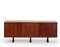Modular low cabinet that can be disassembled into two pieces with one module with sliding doors and one with hinges. Produced by Tecno, Varedo, 1950s/1960s. Solid teak wood, edged and veneered; top covered in brass-plated aluminum, legs in steel and black painted die-cast aluminum. (210x80.5x45 cm.) (slight defects)