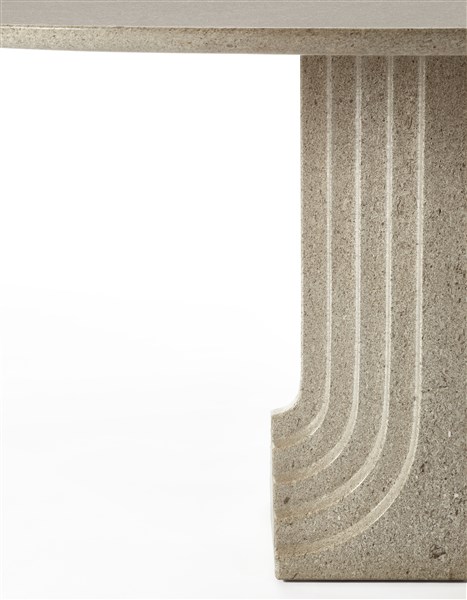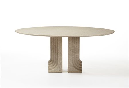 Oval table model "Samo". Produced by Simon, Lazzaro San, drawing from 1970, example from 1983Gray-beige granite. (178x75x123 cm.) (slight defects and original restorations)