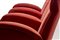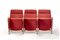 A row of three folding armchairs. Turin, 1957-58. Brass tube, padding upholstered in red synthetic velvet. (170x86x60 cm.) (slight defects and restoration)