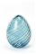 Egg. Murano, 2002. Blown glass with blue, red and colorless twisted canes. Signed in under the base "Venini 2002" and bearing the manufacturer's adhesive label. (h 16.5 cm.)