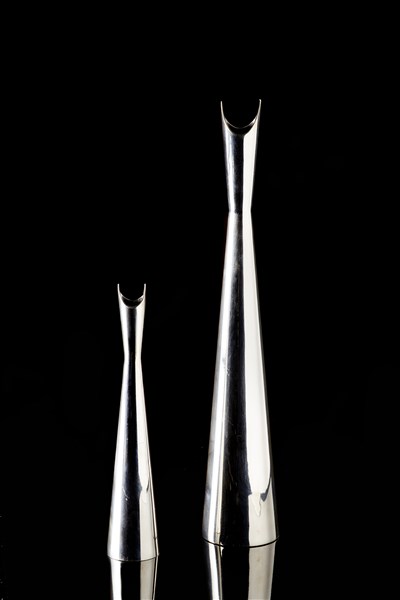 Lino Sabattini Due vasi candeliere modello "Cardinale". Produzione Christofle Ga