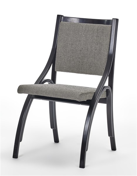 Sedia modello "Cavour". Produzione SIM, Novara, 1959. Legno verniciato nero, seduta e schienale imbottiti e rivestiti in tessuto di lana a piccoli riquadri bianchi e neri. (cm 47x85x45) (lievi difetti e restauri)