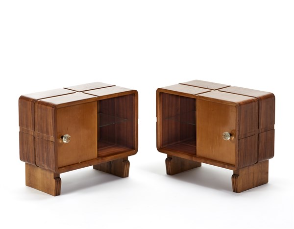 Luigi Scremin (Attribuito) Coppia di comodini ad un'anta con ripiano a giorno e