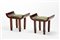Coppia di panchetti Novecento in legno impiallacciato e seduta imbottita e rive
