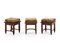 Group of three stools in the manner of Piero Portaluppi in solid wood with legs joined by crossbars, fabric cushions. Milan, 1930s. (32x29x32 cm.) (defects)