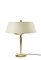 Lampada da tavolo a tre luci con struttura in ottone, paralume in tessuto bianc
