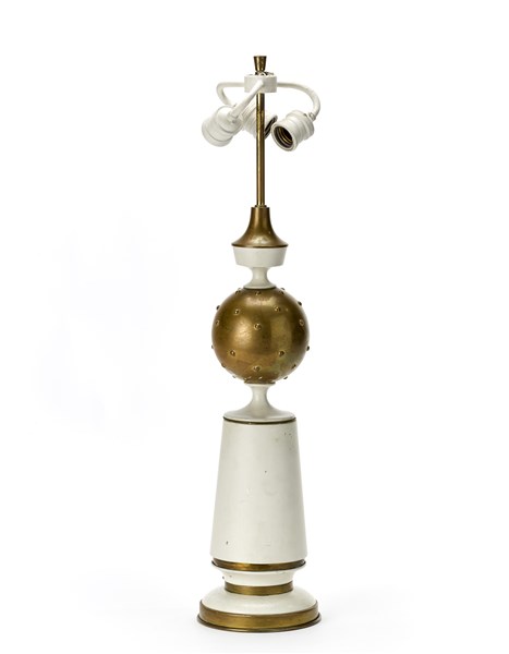 Table lamp. Milan, 1950s. White and brass painted metal. Marked under the base. (h 68.5 cm.) (defects)