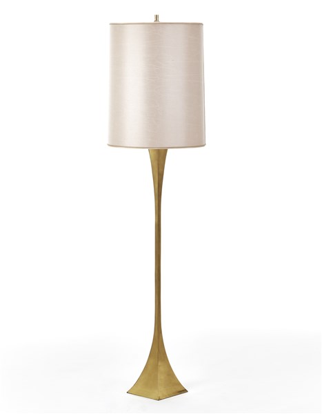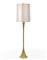 Lampada da terra modello "Piramide". Produzione High Society, Italia, anni '70. Fusto in ottone, paralume in stoffa. (h senza paralume cm 175,5) (lievi difetti)