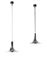 Due lampade a sospensione della serie "AM/AS". Produzione Sirrah, Imola, 1969. Metallo cromato e verniciato bianco. (h cm 30; d cm 39,5) (lievi difetti)