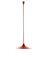 Lampada a sospensione con paralume a tromba in metallo verniciato rosso. Italia