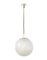 Lampada a sospensione della serie "Tessuti". Venini, Murano, 1982. Vetro soffiato a canne lattimo e cristallo, attacco in acciaio laccato bianco. (d cm 42)