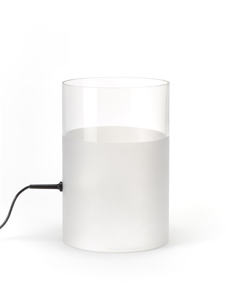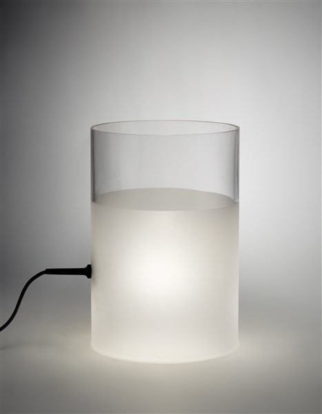 Lampada da tavolo modello "Fatua". Produzione Fontana Arte, Milano, 1972. Vetro incolore parzialmente acidato sulla superficie esterna. (h cm 39; d cm 26,5)