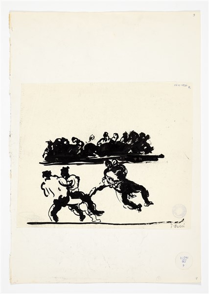 Lotto 381 | Tomaso Buzzi "Lottatori di Sumo" Disegno della serie "Giappone". 15.02.1971. inc