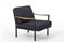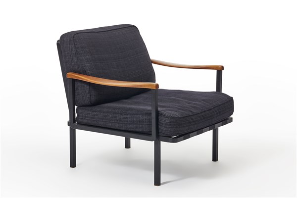Poltrona modello "P24". Produzione Tecno, Varedo, 1961. Struttura in metallo verniciato grigio scuro, cuscini imbottiti asportabili rivestiti in tessuto grigio, braccioli in legno. (cm 76x70x72)