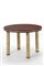 Extendable table with top in teak wood, legs covered in parchment, feet in cast brass. Italy, 1940s. (closed table cm h 77; cm d 110) (slight defects and restoration)