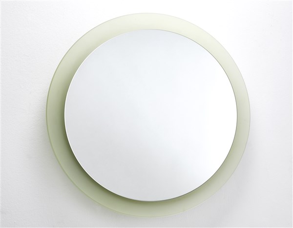 Circular mirror with green acid-etched glass frame. Italy, 1960s. (d 71 cm.)
