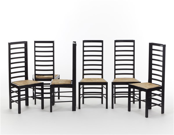 Charles Rennie Mackintosh Lotto di sei sedie modello "326 Willow 2". Produzione