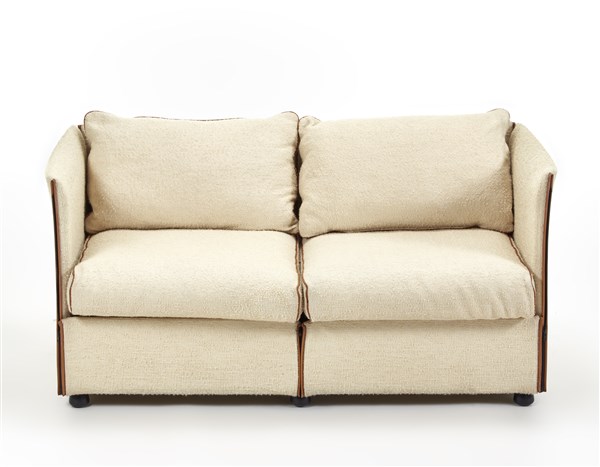Divano modello "Landeau". Produzione Cassina, Meda, produzione dal 1976 al 1991. Rivestimento in tessuto di canapa con profili in pelle e cerniere per unione dei pannelli. (cm 145x70x70)