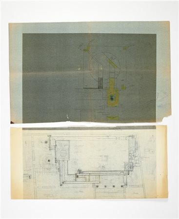 Carlo Scarpa Due eliocopie relative al progetto del giardino della Fondazione Qu