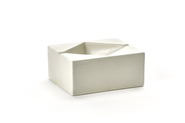 Ashtray of the series "Yantra". Produced by Design Centre, Milan, 1969-79. Opaque white glazed cast ceramic. Signed under the base "SOTTSASS YP / 2". (17x7.5x14.5 cm.) (slight defects)