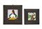 Lot of two tiles decorated with women in traditional Sardinian clothes. Manufacture of F. Margelli, Sassari, 1920s/1930s. Under glass ceramic, original frames in carved wood with geometric motifs and ebonized. Signed on the lower left recto (29x29 cm; 36.5x36.5 cm). In frames.