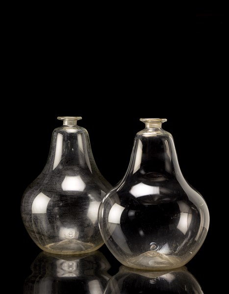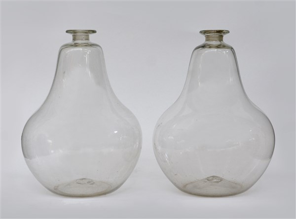 Coppia di vasi a campana. Anni '70/'80. Vetro cristallo trasparente incolore. (h cm 57,5)