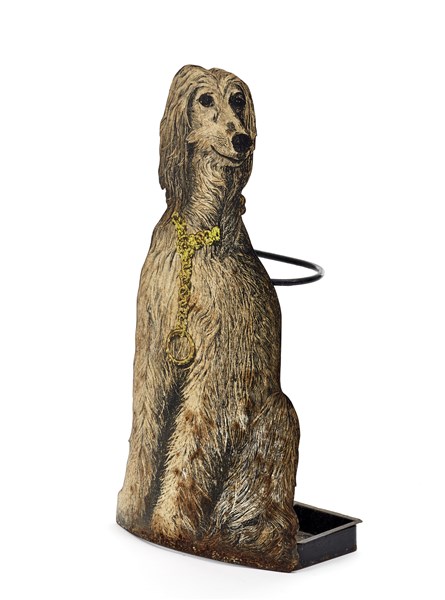 Portaombrelli della serie "Levriero afgano". Milano, anni '50/'60. Metallo decorato a serigrafia. (h cm 77) (difetti)