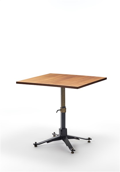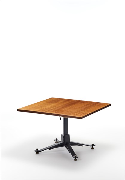 Tavolino da caffè ad altezza regolabile e con piedini regolabili. Produzione ISA, Ponte San Pietro, 1959ca. Legno impiallacciato in teak,