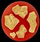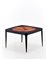 Coffee table. Bologna, 1940s/1950s. Black painted wood with red, golden and white back-painted glass top decorated with animal figures and signed A. Bragalini". (71.5x47.5x71.5 cm.) (slight defects)