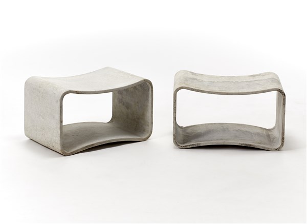 Pair of stools of the series "Loop". Produced by Eternit AG, Switzerland, 1955ca. Fiber cement. (55x32x35 cm.) (slight defects)