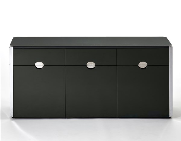 Credenza a tre ante e tre cassetti. Produzione Azucena, Milano, 1961. Legno laccato grigio, placche e angolari in ottone cromato. (cm 166x76x47,5) (lievi difetti)