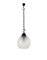 Lampada a sospensione modello "LS10 Boccia". Produzione Azucena, Milano, 1967. Portalampada in alluminio grigio metallizzato, doppio gancio in ferro brunito e paralume a globo in cristallo di Murano soffiato incolore. (boccia: h cm 34; d cm 39) (lievi difetti)
