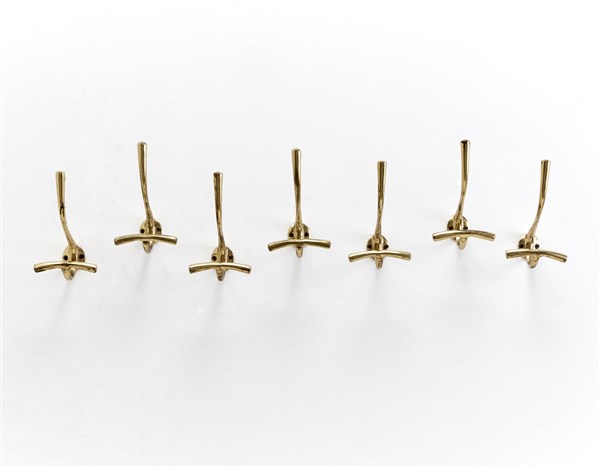 Lot consisting of seven coat hangers. Produced by Azucena, Milan, 1950s. Brass casting. (h 18.5 cm.) (defects)