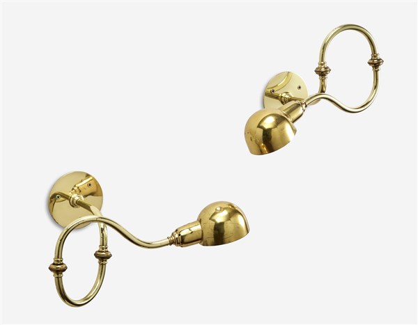 Coppia di lampade da parete modello "LP15 Tromba". Produzione Azucena, Milano, 1964. Ottone. (l cm 58) (difetti)