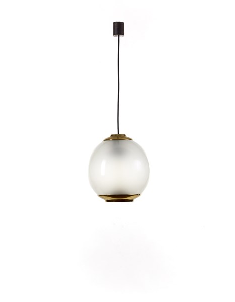 Lampada a sospensione modello "LS2". Produzione Azucena, Milano, 1952. Ottone e vetro satinato sulla superficie interna. (h cm 35; d cm 34) (lievi difetti)