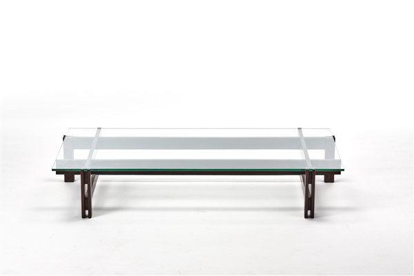 Tavolo da salotto modello "751". Produzione Cassina, Meda, 1962. Struttura in legno massello e piano in cristallo molato. (cm 140x24x74) (lievi difetti e piccoli restauri)