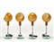 Lotto di quattro lampade da tavolo modello "Parola". Produzione Fontana Arte, Milano, 1980. Diffusore in vetro soffiato incamiciato ambra, stelo e base in cristallo. Segnalazione al Compasso d'Oro del 1981. (h cm 52) (piccole mancanze)
