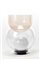 Lampada da tavolo modello "Giova". Produzione Fontana Arte, Milano, 1964. Base in metallo, globo in vetro trasparente incolore che include una sfera interna in vetro soffiato lattimo. Sul globo è appoggiata una coppa in vetro soffiato trasparente rosino pulegoso. (h cm 37)
