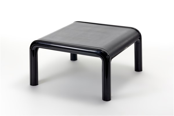 Tavolo basso. Produzione Knoll International, USA, 1977. Struttura in metallo laccato nero, piano in multistrato verniciato nero e nero opaco. (cm 84x45x84)
