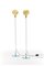 Coppia di lampade da terra modello "Parolona". Produzione Fontana Arte, Milano, anni '80. Diffusore in vetro soffiato opalino ambra, stelo e base in cristallo. Segnalazione al Compasso d'Oro del 1981. (h cm 155)