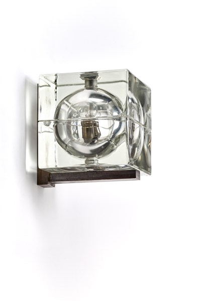 Lampada da parete modello "Cubosfera". Produzione Fidenza Vetraria, Fidenza, 1968. Vetro stampato e metallo. (cm 17x17x17)