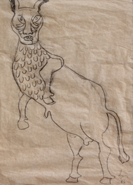 BAJ Enrico (Milano 01/11/1924 - Vergiate 16/06/2003) Studio per 'La caccia allo snark', 1986 matita su carta cm. 27 X 20 Firma, data 'Baj, 86' (in basso a destra) Bibliografia: D. Cameron 'Baj disegni', Fabbri Editori, 1989, p. 157