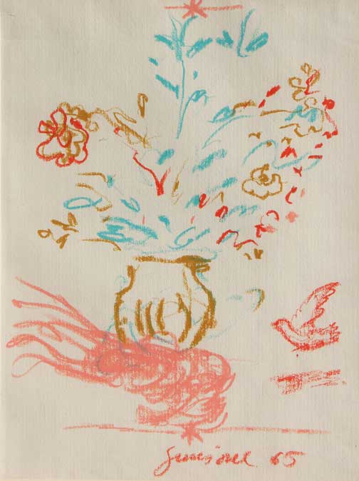 GUCCIONE Piero (Scicli 05/05/1935) Senza titolo, 1965 pastelli a cera su cartoncino cm. 33 X 24 Firma, data 'Guccione, 65' (in basso a destra) Autentica dell'artista su fotografia