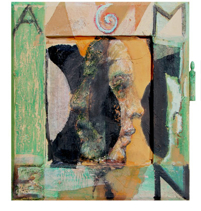 CECCOBELLI Bruno (Montecastello Vibio 02/09/1952) Est e int, 2008 tecnica mista su legno cm. 38 X 34.5 Titolo, data, sigla 'Est e int, 8' (al retro) Autentica dell'artista su fotografia, con n° SER40VE, in data 27/09/2008